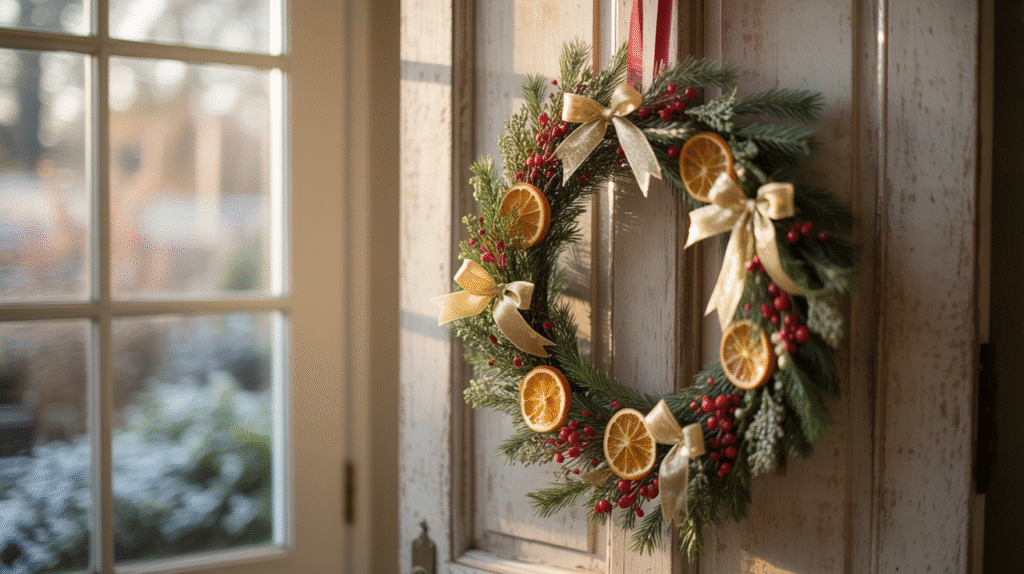 Dried Orange Garland: Slice oranges thinly, dry them in a low oven or dehydrator, then string them with cinnamon sticks and cranberries for a beautiful, fragrant garland that works for both Christmas and winter.