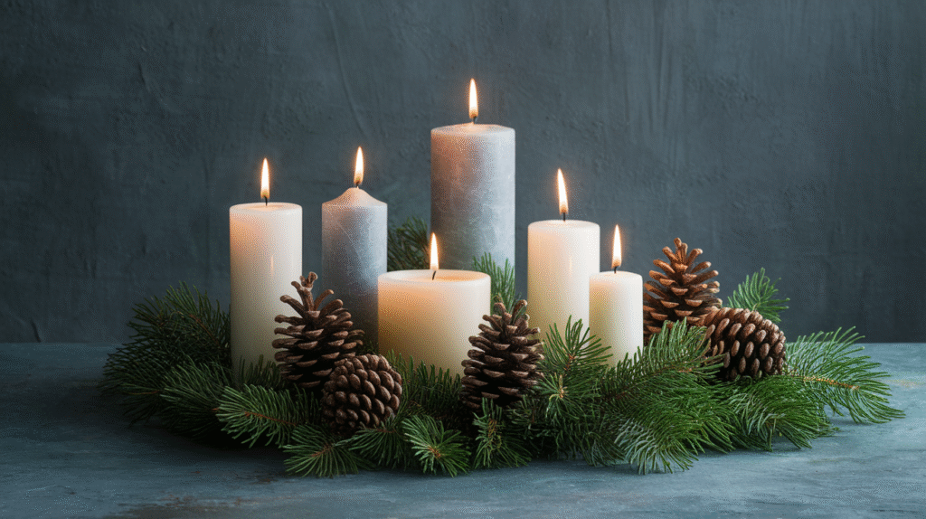 The beauty of winter candle displays lies in their versatility. Whether you’re drawn to elegant minimalism or rustic charm, there’s a style that speaks to your aesthetic.