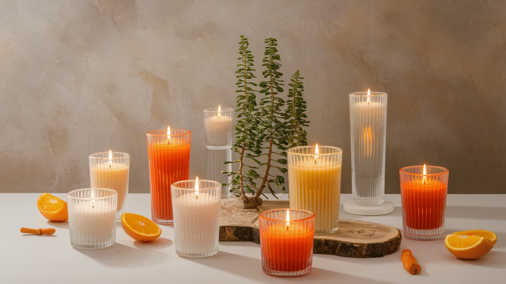 Engaging multiple senses elevates candle displays from merely visual to fully experiential. Citrus and spice arrangements deliver vibrant color while filling your space with invigorating aromas.